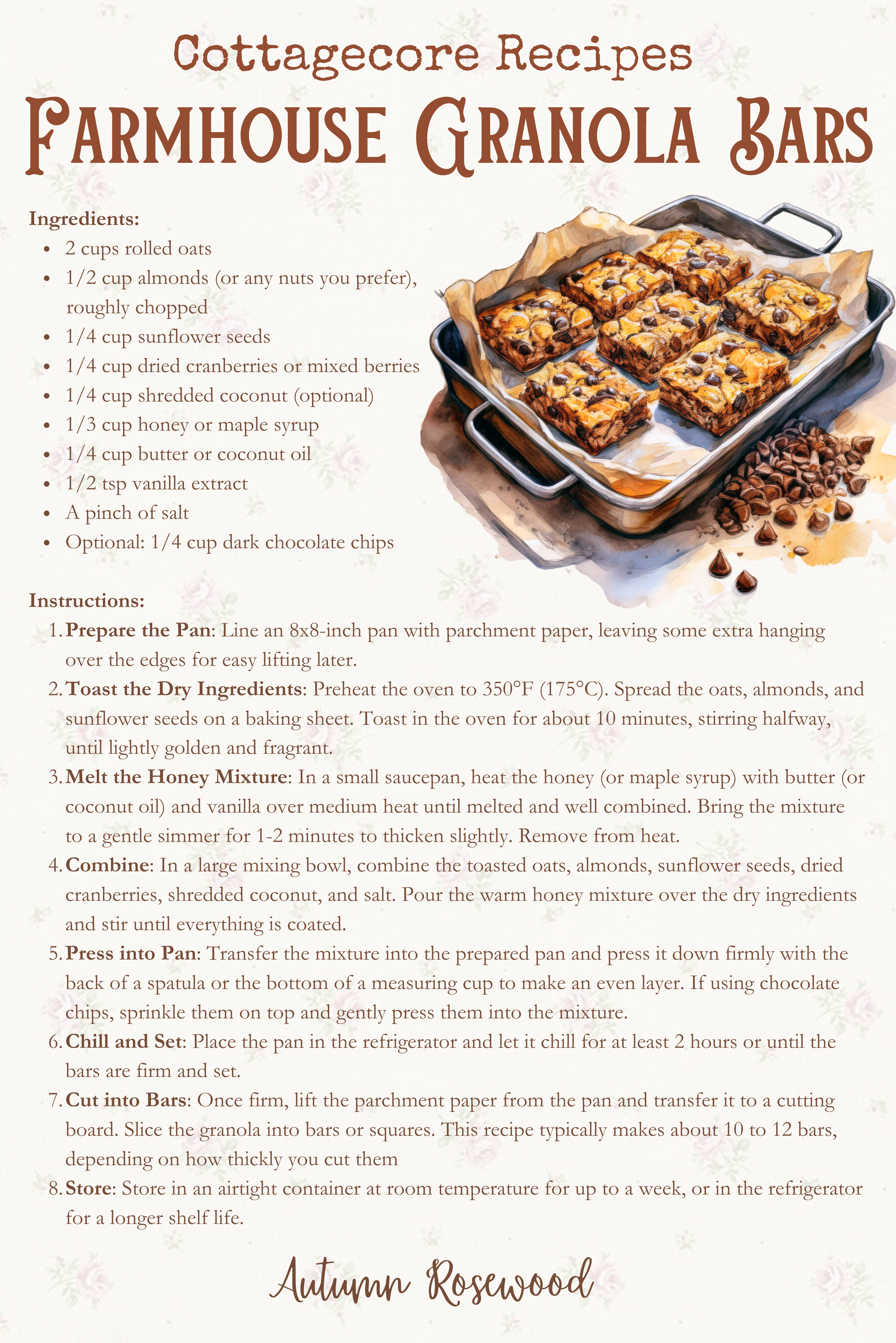 In the heart of every cottage, there’s a cozy kitchen filled with the comforting aromas of homemade delights. One of my favorite treats to whip up is Farmhouse Granola Bars. Not only are they delicious, but they also provide a healthy snack option for both adults and kids alike.