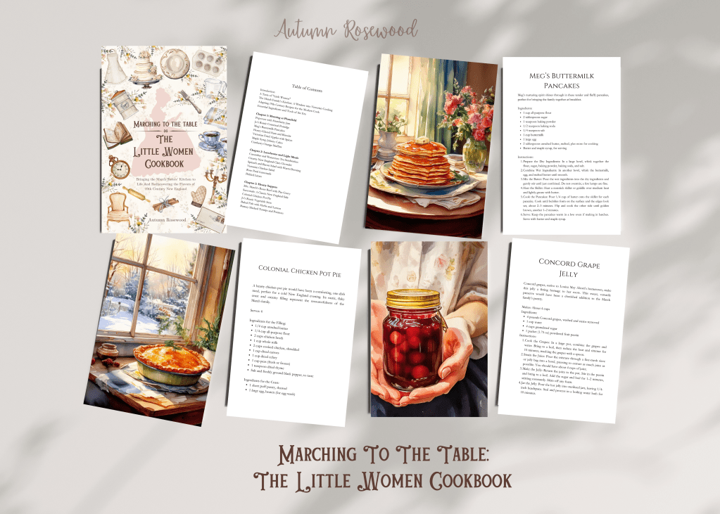 This cookbook is filled with recipes inspired by the March sisters and their adventures. From hearty suppers to delicate tea-time treats, each dish reflects the charm and practicality of the era. Some highlights include: