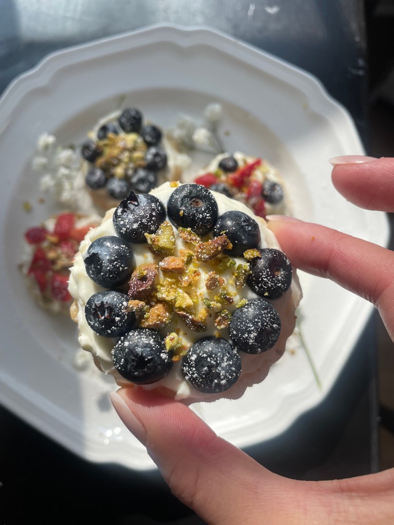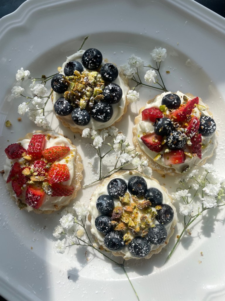 I didn’t plan to make anything fancy. I just wanted something pretty, simple, and sweet , something that felt like spring. Got inspired by Pinterest and made a batch of soft, buttery sugar cookies and topped them with a light whipped vanilla cream. Then came the fresh berries , a few blueberries and strawberries, nothing too fussy, and a sprinkle of chopped pistachios for color and crunch.