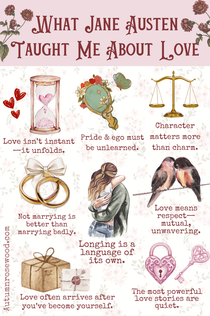 When I think about Elizabeth and Darcy, I don’t just think about the “happily ever after.” I think about how they earned it, through growth and pride-swallowing and learning to really see each other. Love in Austen’s world isn’t just a feeling. It’s work. It’s humility. It’s timing. And it’s always tangled up in class and expectations and the limitations of being human.