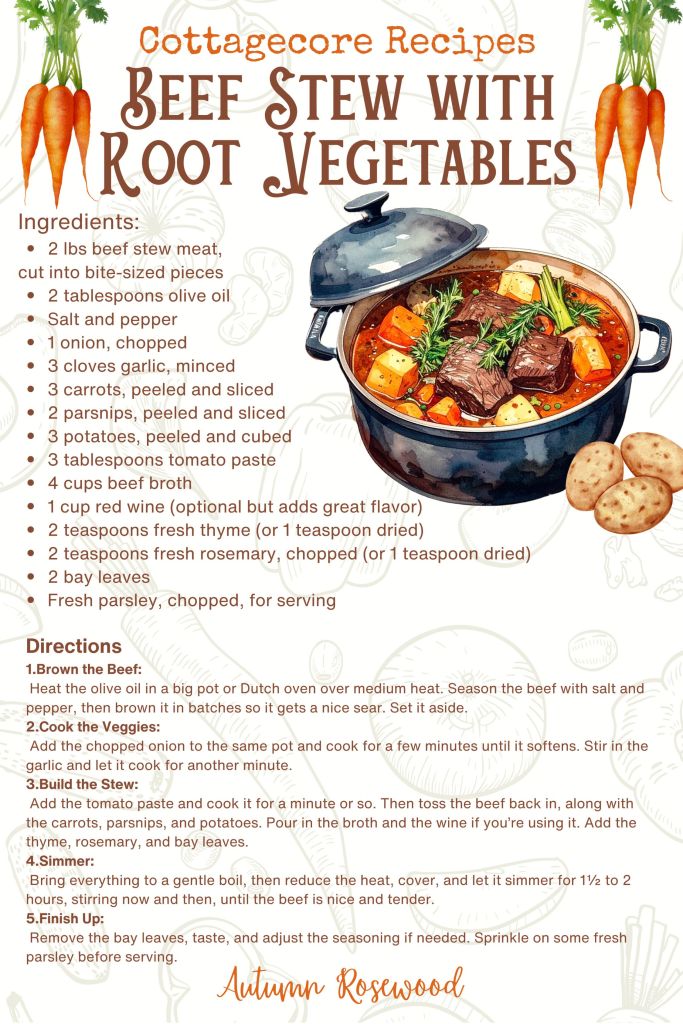 This Beef Stew with Root Vegetables is one of those recipes that’s so simple to make and always hits the spot. It’s got all the good stuff: tender beef, carrots, potatoes, and parsnips simmered together in a rich, herby broth. I like to keep it easy and let it do its thing on the stove while I tackle the evening chores (or sneak in a cup of tea on the porch).
