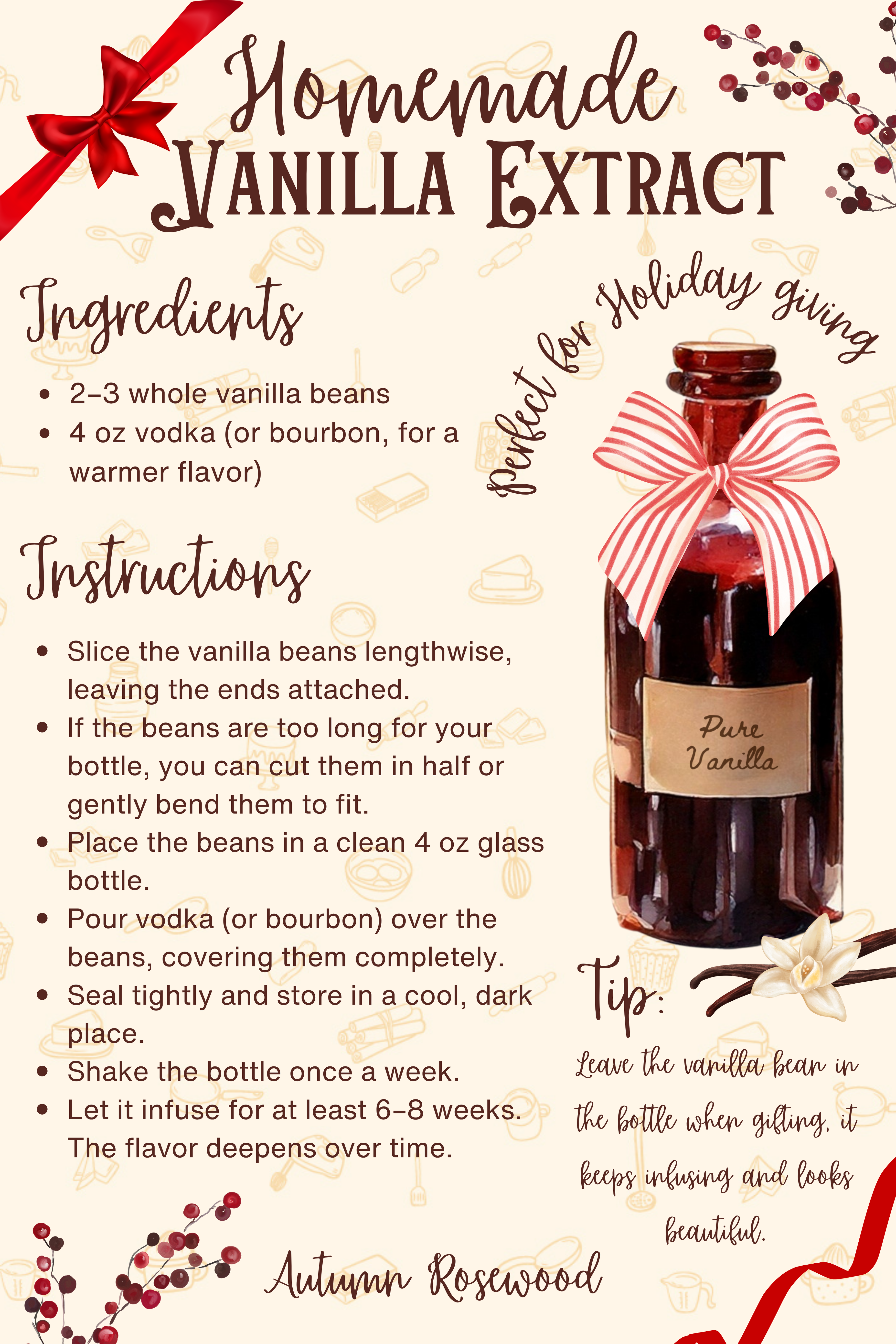 Every year as the air turns crisp and the evenings arrive a little sooner, I like to tuck away a few bottles of something special: homemade vanilla extract. It’s simple, cozy, and makes the loveliest little gift for holiday baking or just because moments.