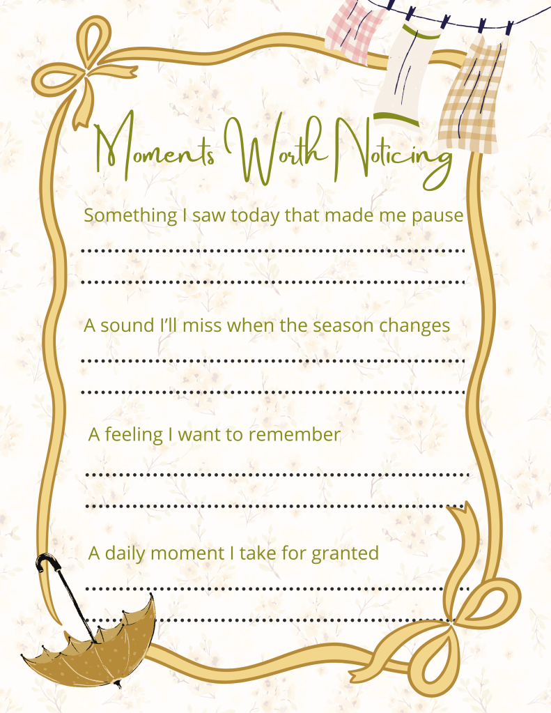 The leaves fall, the coffee gets cold, the people you love grow and change, and that’s okay. We don’t have to hold everything still to appreciate it. We just have to be present enough to notice it before it’s gone.